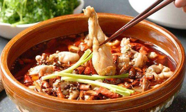 原料:牛蛙500克輔料:黃瓜、金針菇各100克。提前熬好的料湯800克,自制麻辣油30克,幺麻子藤椒油20克,青美人椒段30克,花椒20克,鹽3克,味精、雞粉各2克。制作流程:1、牛蛙制凈,改刀成3厘米長、1厘米寬的小塊,納盆后加濕淀粉20克、料酒15克、味精、白胡椒粉各5克、鹽2克抓勻腌制10分鐘,然后加入藤椒油5克一同拌勻。2、黃瓜洗凈去皮,改刀成手指粗細的長條;金針菇洗凈去根。二者分別入沸水中汆熟,撈出控干水分后擺入盤中墊底。3、鍋入提前熬好的料湯燒開,下入牛蛙,加鹽、味精、雞粉調味,再次燒沸后改小火煮2-3分鐘,勾米湯芡,起鍋倒入墊有輔料的盤中,表面撒美人椒段、花椒。4、鍋入自制麻辣油、藤椒油燒至七成熱,起鍋澆入盤中激香即可。料湯制作:鍋入底油燒至五成熱,下入海南黃貢椒醬600克、野山椒段250克、紅小米辣碎50克煸炒出香,沖入清水20斤大火燒開即可,需當餐用完。提前熬制料湯的目的是為了加快出菜速度,這樣走菜時無需現(xiàn)炒黃貢椒醬、野山椒等,可以直接舀湯入鍋,方便快捷。店中還有一款熱賣菜“水煮敲蝦”,也是用此湯制作而成。自制麻辣油:1、取一不銹鋼湯桶,下入干辣椒段2斤、大紅袍麻椒2斤混合均勻。2、鍋入熟菜籽油40斤燒至四成熱,下入蔥白段3斤、老姜片2斤、蒜子2斤,小火熬至蔥段漂起、微微變黃(注意不能熬得太久,否則油中蔥香味過大,會掩蓋住一部分麻辣味)時撈出,再下青花椒3斤、野山椒碎4斤慢火熬出香味,打出料頭,將油溫升至六成熱,起鍋沖入裝有辣椒段、麻椒的湯桶中,邊沖邊攪,使其受熱均勻,加蓋常溫靜置一晚,第二天打渣留油即成。