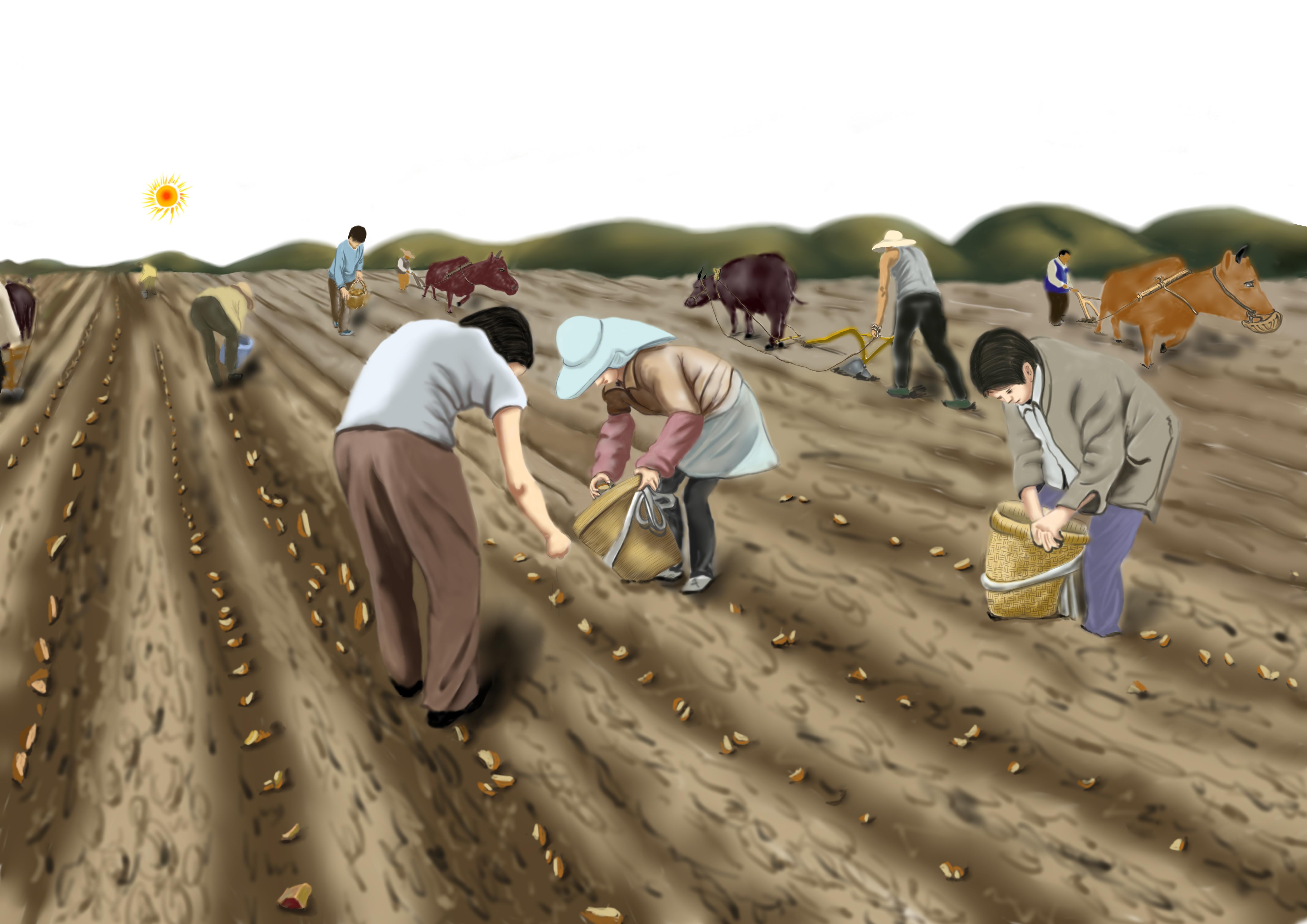 馬鈴薯塊莖膨大需要疏松肥沃的土壤。因此,種植馬鈴薯的地塊最好選擇地勢(shì)平坦,有灌溉條件,且排水良好、耕層深厚、疏松的砂壤土。前作收獲后,要進(jìn)行深耕細(xì)耙,然后作畦。畦的寬窄和高低要視地勢(shì)、土壤水分而定。地勢(shì)高排水良好的可作寬畦,地勢(shì)低,排水不良的則要作窄畦或高畦。
